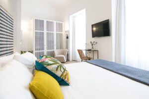 DECOMADER SL ha sido el encargado de cubrir toda la carpintería que compone este histórico edificio con resultados espléndidos. La carpintería se compone por puertas técnicas contrafuego con certificados EI30C5 y EI60C5 para las habitaciones y zonas comunes, armarios lacados de diseño en cada habitación y zonas comunes, suelos, revestimientos en madera varios, y gran parte del mobiliario entre otras muchas cosas.