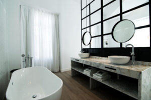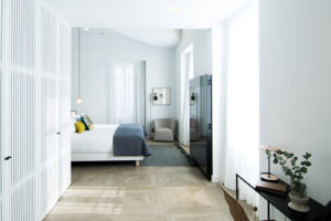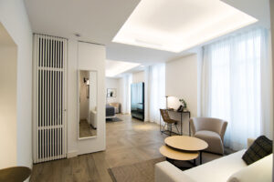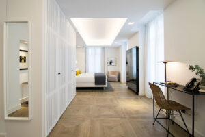 El trabajo conjunto y buena conexión entre DECOMADER SL y el equipo de interioristas HUP Interiorismo han dado como resultado un edificio con un diseño atemporal en el que se ha tenido especial mimo en respetar los elementos originales mezclándolos con elementos más contemporáneos y cosmopolitas, con colores neutros y materiales nobles que aportan elegancia y confort a todos los espacios.